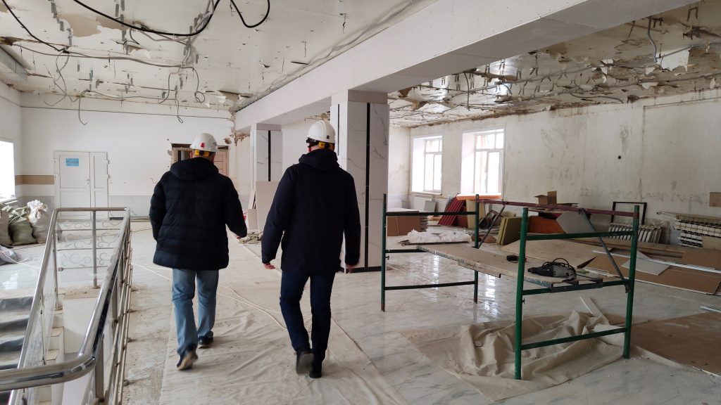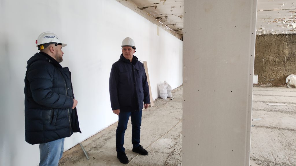 Алексей Борисович осмотрел основные помещения ДК «Юбилейный», обсудил с представителем подрядной организации текущие этапы ремонта и соблюдение утверждённого графика работ, проверил качество используемых строительных и отделочных материалов, пообщался с руководителем учреждения, чтобы выяснить актуальные потребности.